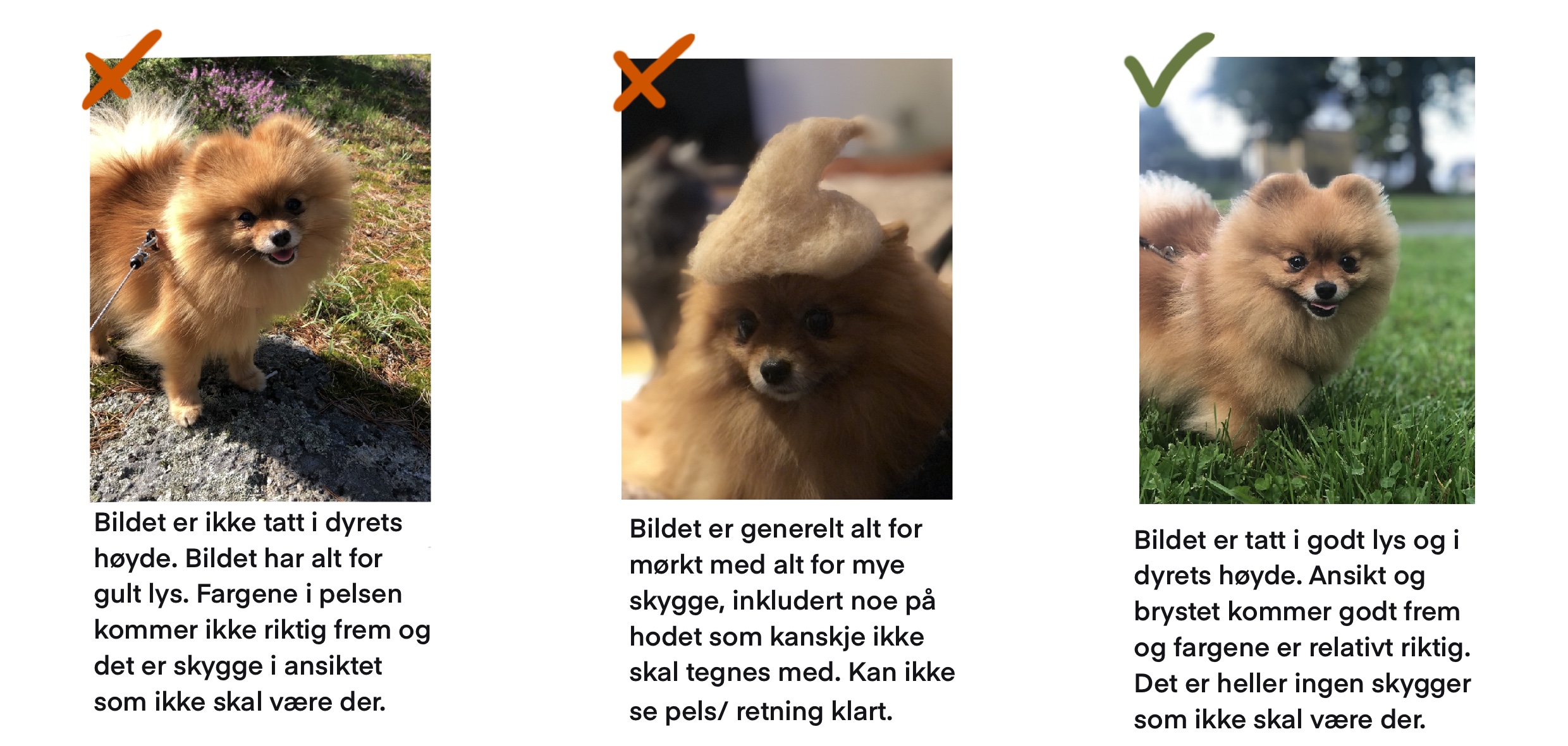 Jeg kjenner ikke kjæledyret ditt personlig, så et bilde av god kvalitet hjelper veldig mye når jeg skal tegne kjæledyret ditt.